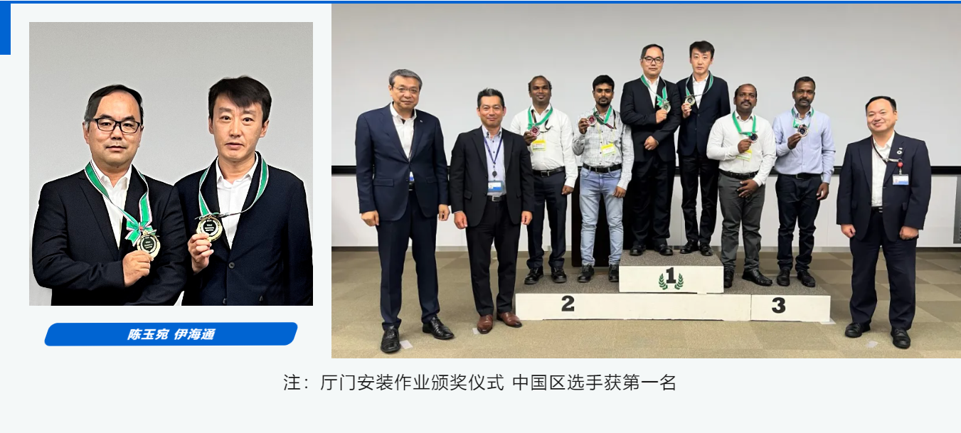 在本屆TTM大會中,東芝電梯中國區(qū)的選手們表現(xiàn)出色,參與了控制裝置的組裝、廳門安裝作業(yè)及電梯定期檢查三個項目,斬獲了2金1銀的優(yōu)異成績,展現(xiàn)了領(lǐng)先的技術(shù)實力、嚴(yán)謹(jǐn)?shù)墓そ尘窈妥吭降膱F(tuán)隊協(xié)作能力。